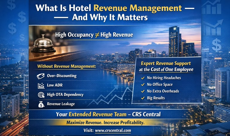 At CRS Central, we help hotels take control of their revenue โ not just increase occupancy, but improve overall financial performance.